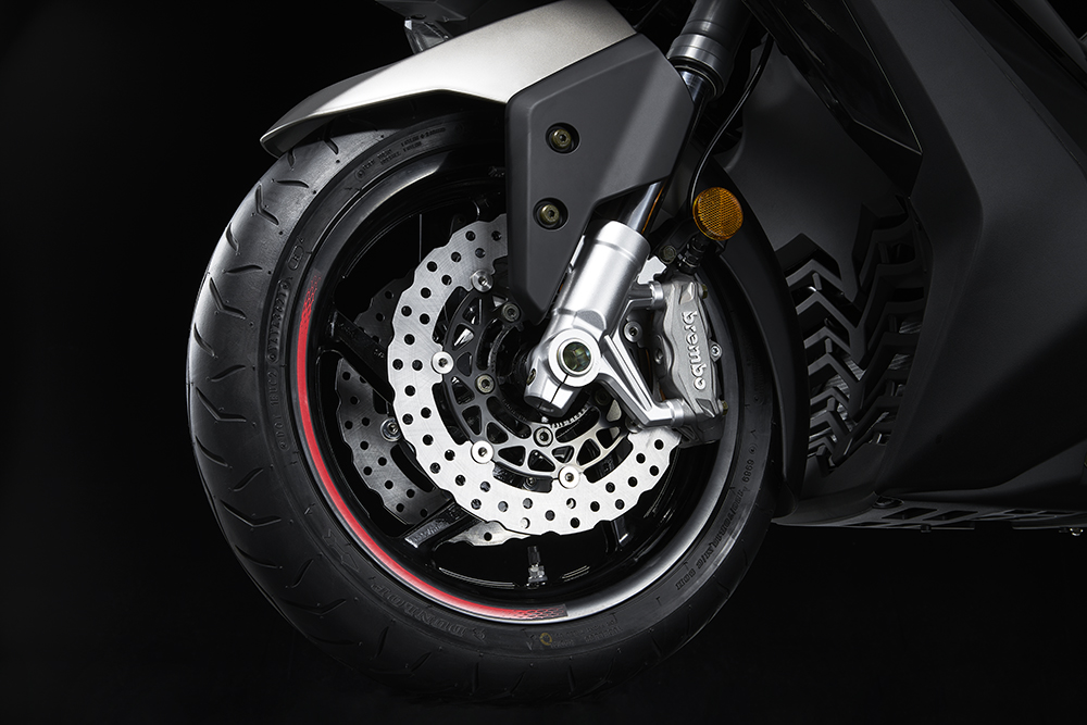 AIBS elevates safety to another level by incorporating a bank angle sensor to constantly regulate brake force applied on each wheel during cornering, when traction is already at its limit