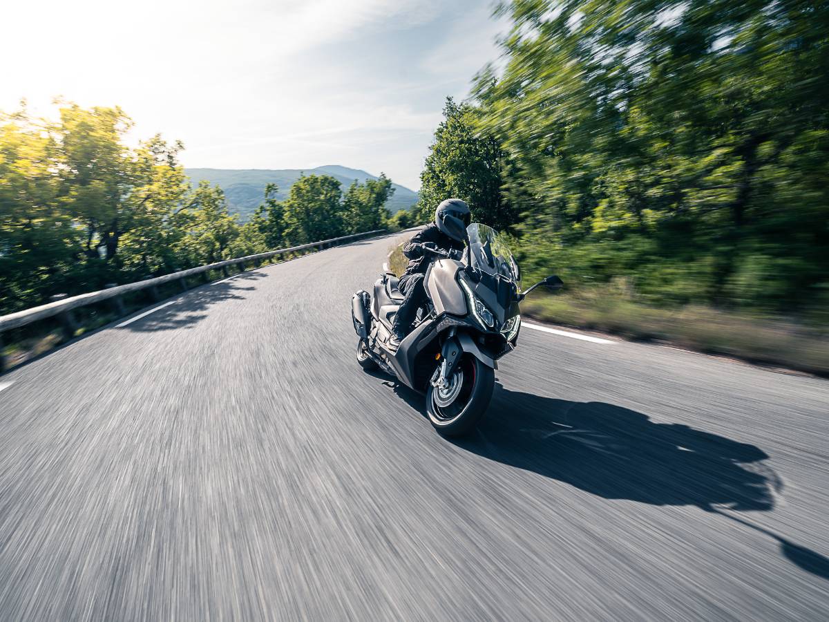 AK 550ās newly designed 550cc liquid-cooled twin-cylinder DOHC 8V engine is silky smooth and highly responsive. Its 53 HP output generates powerful acceleration as well as impressive top speed. The power delivery is tuned to suit both spirited adventure riding as well as pleasant touring.